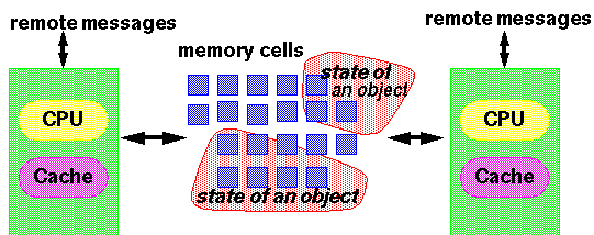 Note the double meaning of synchronized: it deals with locks that permit higher-level synchronization protocols, while at the same time dealing with the memory system (sometimes via low-level memory barrier machine instructions) to keep value representations in synch across threads. This reflects one way in which concurrent programming bears more similarity to distributed programming than to sequential programming. The latter sense of synchronized may be viewed as a mechanism by which a method running in one thread indicates that it is willing to send and/or receive changes to variables to and from methods running in other threads. From this point of view, using locks and passing messages might be seen merely as syntactic variants of each other.